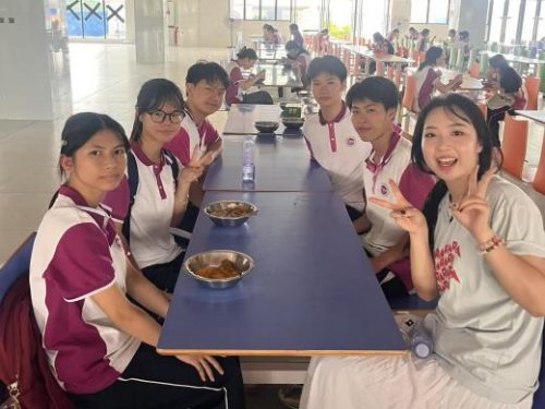團(tuán)隊(duì)成員在廣西靈山縣第三中學(xué)開(kāi)展陪餐服務(wù)工作