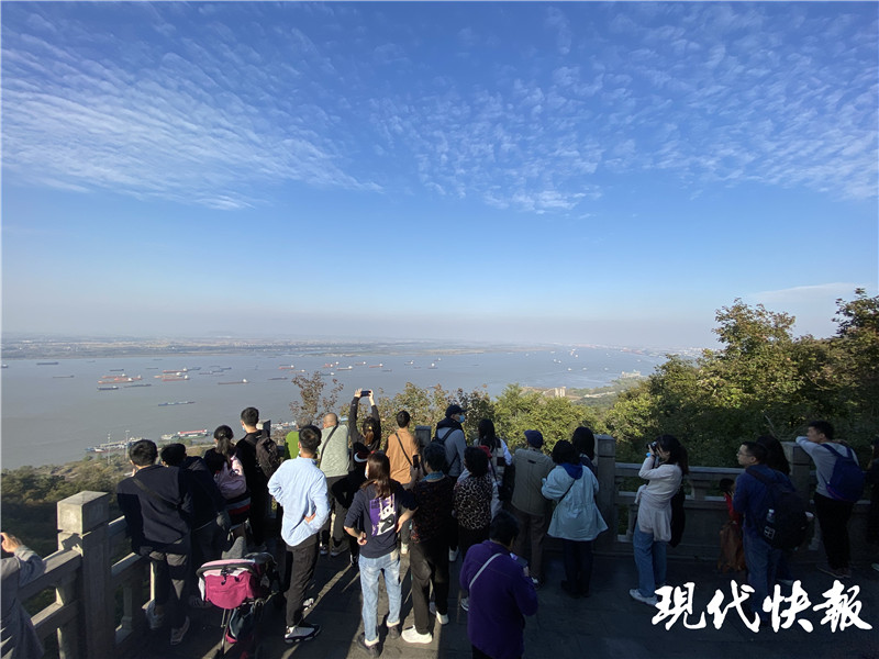 此外,當(dāng)天也是重陽佳節(jié),記者在景區(qū)看到,不少老年人趁著早上陽光正好,前來景區(qū)登高,他們一口氣登到山頂,在棲霞山的最高點(diǎn)遠(yuǎn)眺長(zhǎng)江。也有一些老人家表示,“除了來登高,還聽說現(xiàn)在棲霞山有一些楓葉開始變色了,趕緊來看看。”