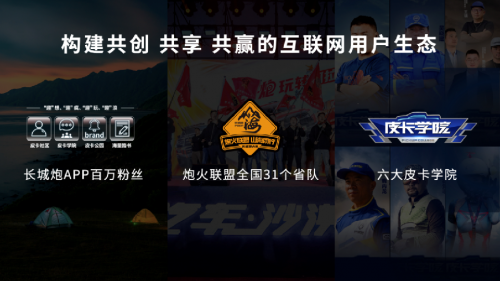 線上,長城炮創(chuàng)建行業(yè)首個專屬APP,粉絲已破百萬;線下,創(chuàng)建國內(nèi)首個皮卡車友會炮火聯(lián)盟,全國31個省隊持續(xù)壯大;六大皮卡學院全面運營,讓皮卡成為一種生活、一種態(tài)度、一種精神。