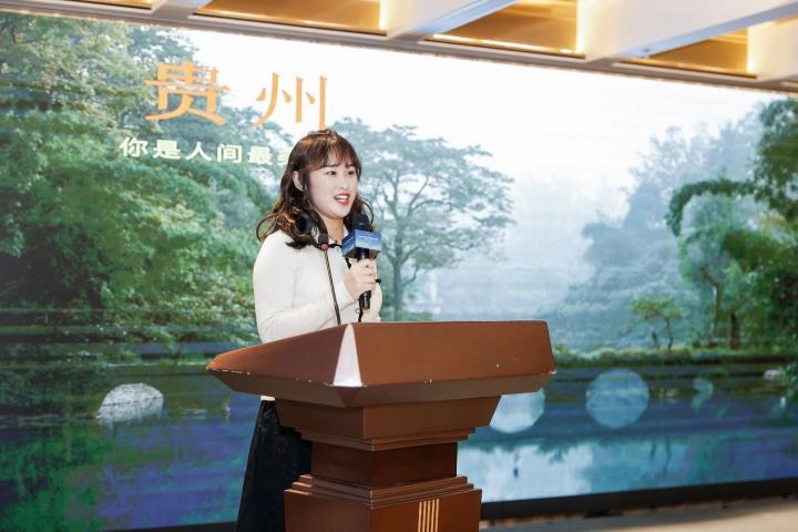 掉落人間的綠寶石荔波小七孔、百年古建甲秀樓、鮮到心里的凱里酸湯牛肉火鍋、酸甜可口的刺梨汁等貴州元素為大眾所熟知,但來自南京的旅游達人笑妍日記給活動現(xiàn)場的嘉賓以新的打卡視角。她曾多次深入貴州旅行,在新媒體平臺宣傳推廣的貴州風(fēng)光人文等引發(fā)數(shù)萬轉(zhuǎn)發(fā)和數(shù)百萬關(guān)注,生動活潑地將貴州的山奇水秀,多元民族文化展示給現(xiàn)場的嘉賓。