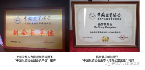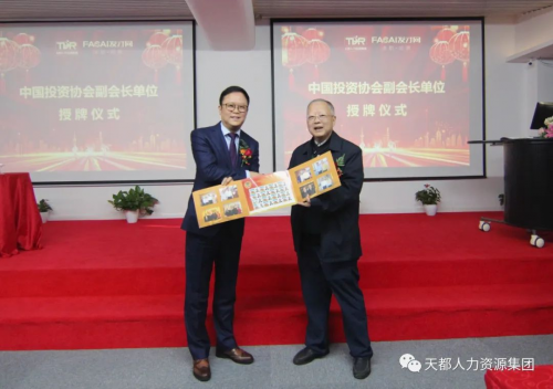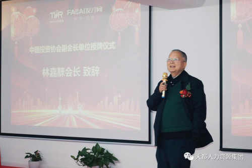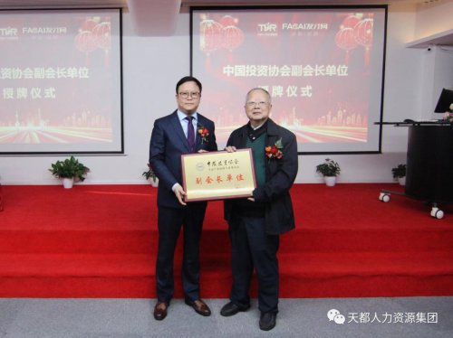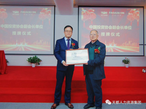 林嘉騋會長為上海天都人力資源集團(tuán)授予“中國投資協(xié)會副會長單位”銘牌