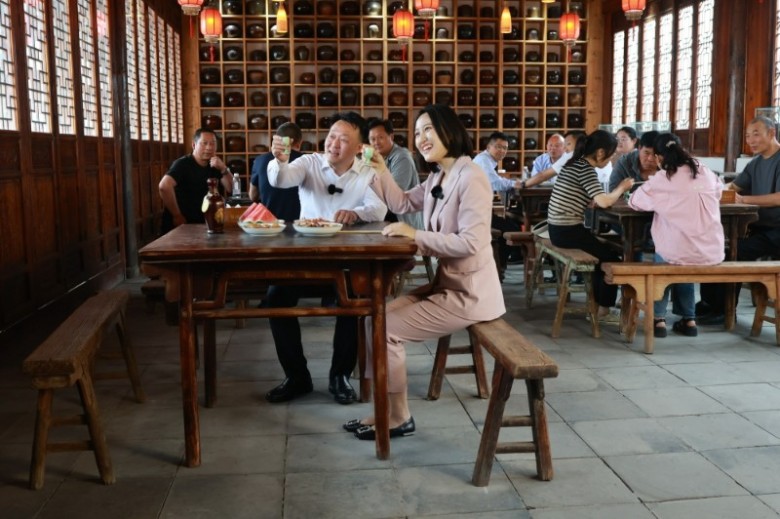 直播活動中,縣長蘇衛(wèi)哲和主持人向廣大網(wǎng)友介紹了湯溝的“香泉井”、“天啟酒窖”、湯溝釀酒基地的手工班窖池群,讓網(wǎng)友們深度了解湯溝酒的歷史沿革、文化底蘊(yùn)和釀造工藝。