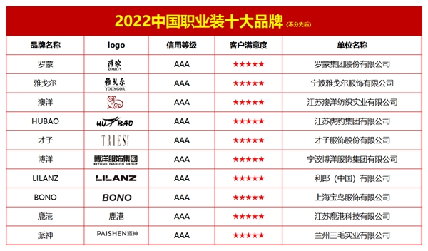 隨著時(shí)代的發(fā)展,職業(yè)裝不再只是簡單的制服,需求逐漸向“品質(zhì)、時(shí)尚、舒適、健康”方向轉(zhuǎn)變,需要體現(xiàn)單位企業(yè)、品牌的文化和特色,更要滿足個(gè)性化、定制化需求,從材質(zhì)的選擇到款式的設(shè)計(jì),職業(yè)裝逐漸呈現(xiàn)出多樣化、工藝化、綠色環(huán)保等多重需求。職業(yè)裝招投標(biāo)市場發(fā)展迅速,市場規(guī)模不斷擴(kuò)大,競爭日益激烈,職業(yè)裝品牌化發(fā)展成為企業(yè)贏得訂單和客戶信任的關(guān)鍵,品牌化發(fā)展可以幫助企業(yè)提升品質(zhì)和品牌形象,擴(kuò)大市場份額,提高產(chǎn)品附加值,推動(dòng)產(chǎn)品與服務(wù)升級,形成品牌認(rèn)同和信賴,提高用戶對產(chǎn)品的價(jià)值認(rèn)可度。“2022中國職業(yè)裝十大品牌”榜單權(quán)威發(fā)布旨為推動(dòng)我國服裝行業(yè)高質(zhì)量可持續(xù)發(fā)展進(jìn)程,促進(jìn)更多服裝企業(yè)加強(qiáng)自主品牌建設(shè)和產(chǎn)品優(yōu)化,提升品牌在招投標(biāo)市場的知名度、美譽(yù)度和影響力,樹立“中國品牌”標(biāo)桿,發(fā)揮品牌引領(lǐng)帶動(dòng)作用,為廣大招標(biāo)采購單位需求方、代理加盟商、經(jīng)銷商及社會(huì)各界提供重要驗(yàn)證參考。具體如下: