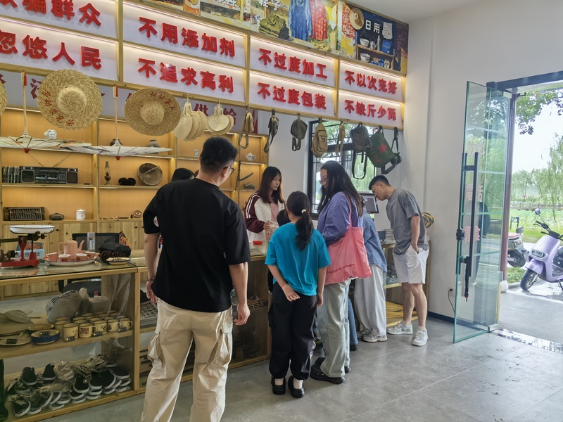 王銀鑫介紹,方巷鎮(zhèn)以利民村“北湖拾秋”和沿湖村“懷舊文旅”為核心主題,精心策劃了系列農文旅融合活動。長假期間,兩村累計接待游客約6萬人次,整體旅游消費收入突破300萬元。其中,“時光供銷社”懷舊主題空間成為“頂流打卡點”,不僅以場景再現(xiàn)引發(fā)了游客的情感共鳴,更創(chuàng)新性地成為周邊村的“共富驛站”,通過統(tǒng)一采購、包裝、銷售和電商直播,將赤松茸、桑葚凍干、興灣大米等方巷特產標準化、品牌化,實現(xiàn)全鎮(zhèn)范圍內特色農產品的集中銷售,助力推進村村抱團、共富發(fā)展。